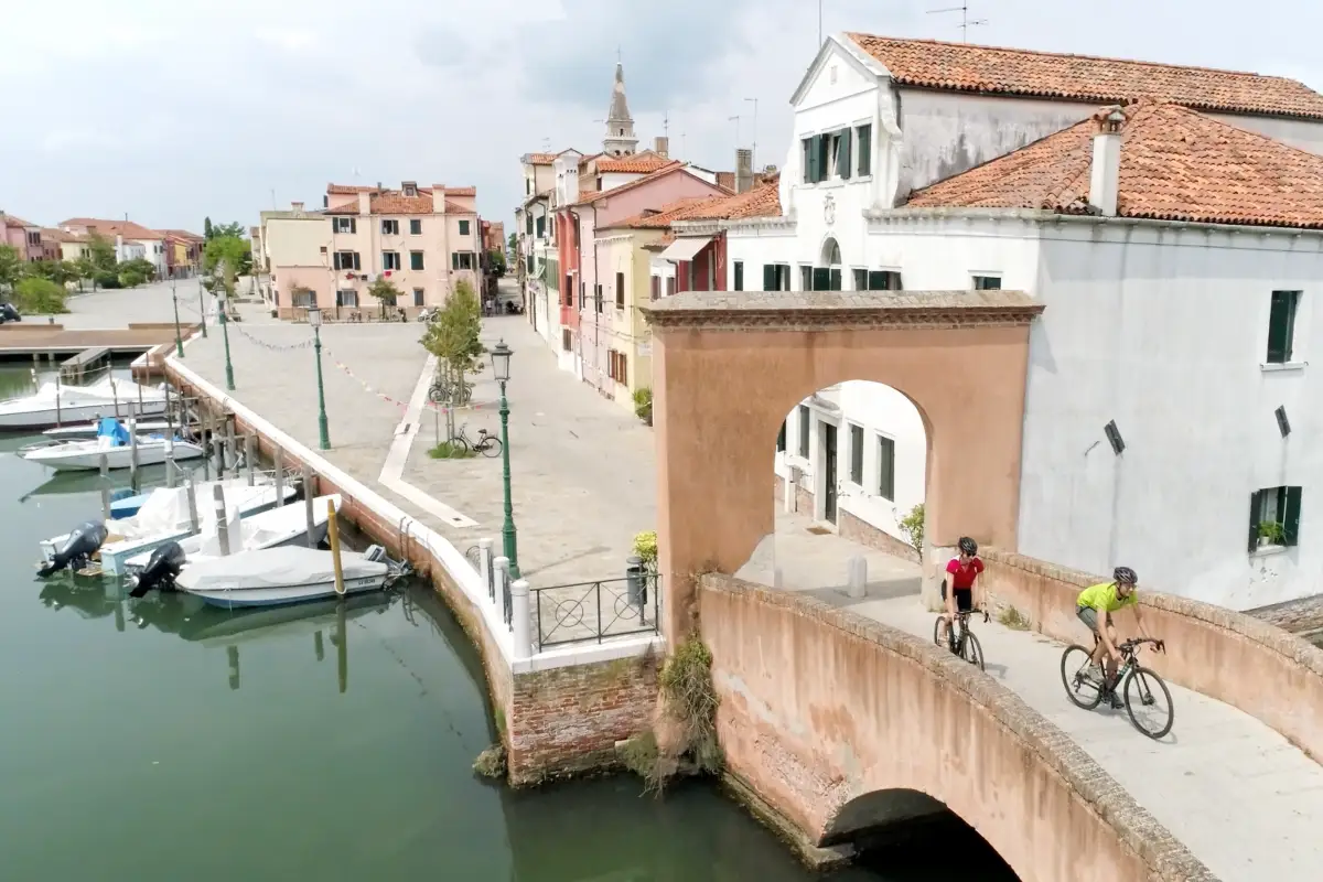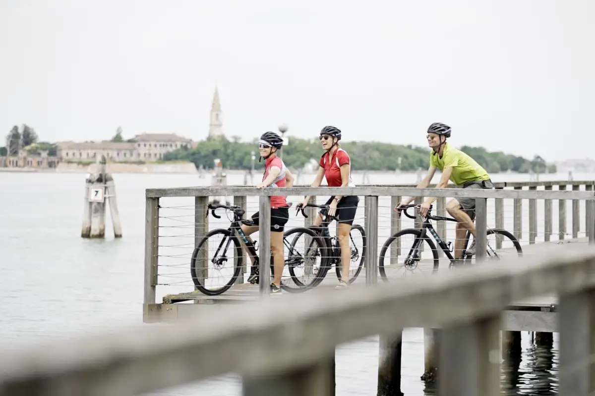 Il primo giorno in bicicletta vi porterà al Lago di Garda: Lazise, Bardolino e il prezioso entroterra lacustre vi regaleranno panorami indimenticabili. L’itinerario prosegue poi verso est e tocca alcune delle più importanti città d’arte del Nord Italia: Verona, Vicenza, Padova. Godetevi i pernottamenti nei centri storici, perfetti per una passeggiata serale o un aperitivo tra antiche architetture e vivaci piazze. Il percorso vi condurrà in una zona costellata di ville venete e attraversata da importanti corsi d’acqua, come l’Adige, il Bacchiglione e il Brenta. Pedalerete su piste ciclabili e strade secondarie. La destinazione finale di questo tour è l’unica città sull’acqua, con un’ultima tappa sull’isola del Lido, alla scoperta di una Venezia autentica e lenta.